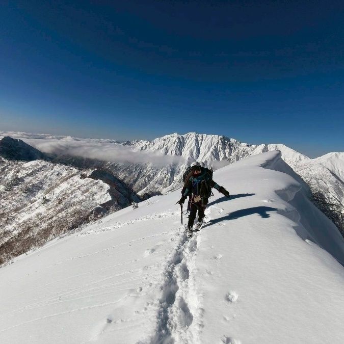 たくさんの人達が同じ山域に入っていたが、同じルートを登る姿は見えず、みなさん飛騨沢メインの槍平小屋からの軽荷でのピストンのよう。でもそのルートは単調な歩きで景色も変わらず、どう見ても面白そうではなく、雪崩の心配もあるし、私は時間がかかっても、中崎尾根の方が景色も楽しいし、堅実な冬季ルートだと思う。
